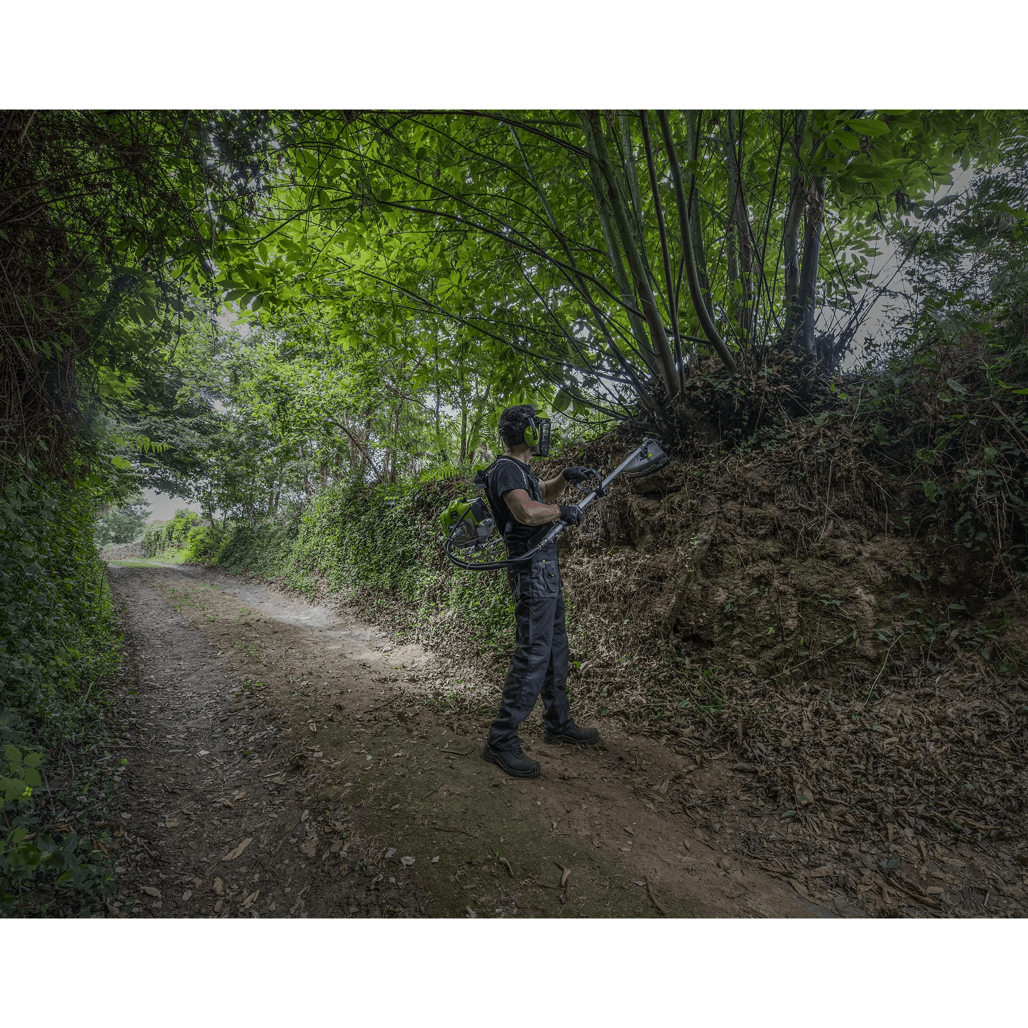 Roçadora de Mochila concebida para desbastar e cortar áreas densas de vegetação. Ideal para trabalhos em terrenos com declives acentuados, diminuindo o efeito da fadiga, permitindo maior liberdade de movimentos. Através do seu motor a combustão a 2 tempos, apresenta um baixo consumo, minimizando o impacto no ambiente cumprindo com a norma Euro 5.